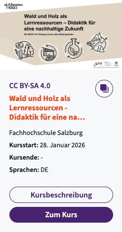 Ein weiterer iMooX-Kurs geht an den Start mit dem Titel „Wald und Holz als Lernressourcen – Didaktik für eine nachhaltige Zukunft“ von der FH Salzburg zusammen mit der Hochschule für Agrar und Umweltpädogik.