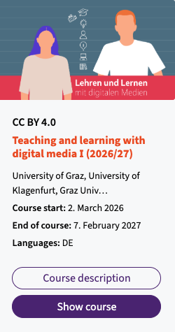 Es freut mich, dass am Samstag der MOOC zu „Lehren und Lernen mit digitalen Medien I“ gestartet ist. Diese MOOC ist primär für eine Lehrveranstaltung des Entwicklungsverbundes-Süd-Ost der PädagogInnenBildung NEU vorgesehen und Teil der gesamten Ausbildungsinitiatve zu „Digitale Kompetenzen für Lehramtsstudierende“. Diese Lehrveranstaltung soll helfen zukünftige Lehrerinnen und Lehrer fit zu machen für das neue digitale Zeitalter. Auch dürfen wir ankündigen, dass der MOOC rundherum mit großem Aufwand erneuert wurde um den neuesten Entwicklungen im Themenfeld entsprechend Rechnung zu tragen – hier einen großen Dank an alle meine Kolleg:innen für die tolle Arbeit.