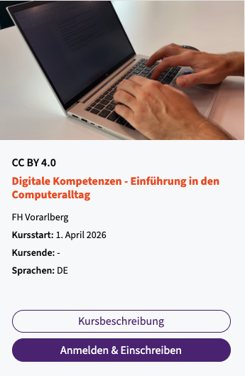 Die FH Vorarlberg hat letzte Woche einen neuen MOOC zum Thema „Digitale Kompetenzen – Einführung in den Computeralltag“ gestartet: